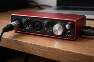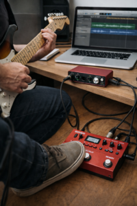 Depuis que j'utilise une interface (la Focusrite Scarlett Solo, une des plus vendues) entre ma loop station et mon ordinateur, la différence est immédiate : plus de bruit de fond, signal propre, dynamique préservée. Pour enregistrer des loops guitare ou basse à la maison, une interface 2 entrées / 2 sorties suffit largement. Les modèles courants autour de 80-120 € font le travail sans discussion.